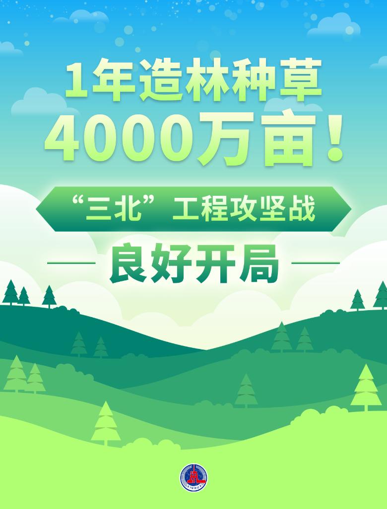 在我國北方遼闊的疆土上,一道綠色長城正在不斷加固。國家林草局最新信息顯示,僅一年時間,“三北”工程攻堅戰(zhàn)完成造林種草約4000萬畝。