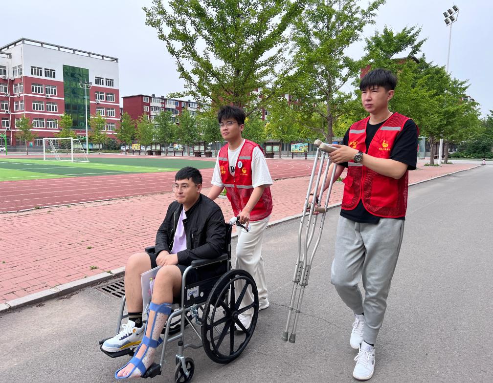 “我腳受傷了,行走不方便,你們能推我進(jìn)考場嗎?”“沒問題!我們會全程陪你進(jìn)出考場。”沈陽市第五十三中學(xué)考點門口,當(dāng)看到一位考生坐著輪椅行動不便時,志愿者們迅速承擔(dān)起了接送任務(wù)。