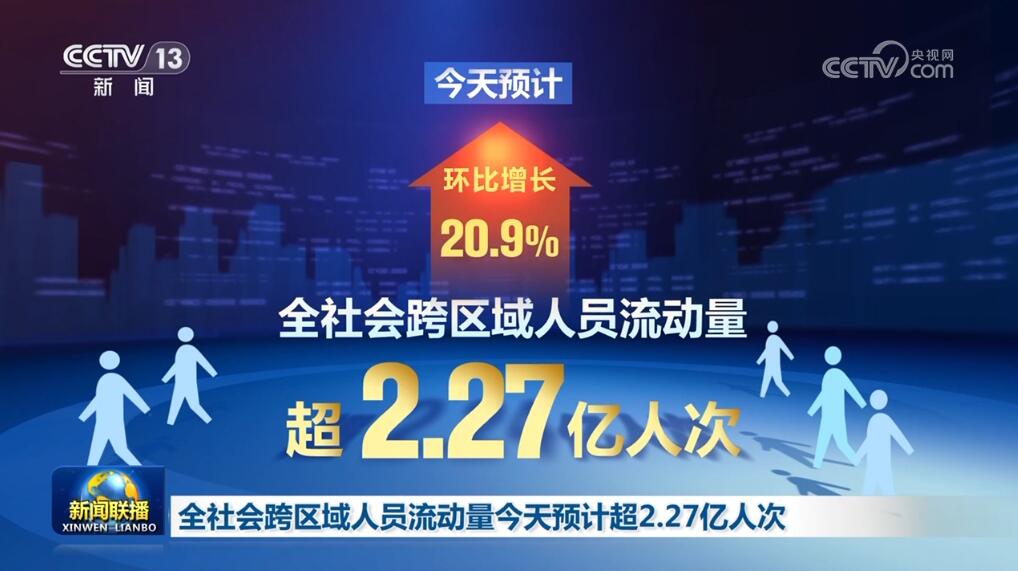 全社會跨區(qū)域人員流動量8日預計超2.27億人次