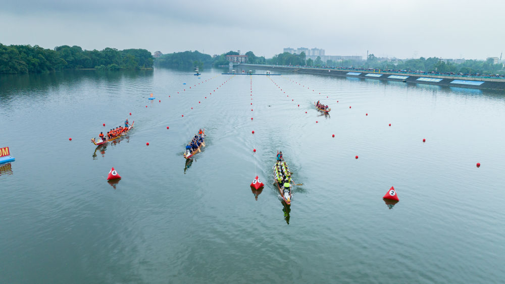 圖為6月10日端午節(jié)在重慶舉行的“大足石刻杯”成渝雙城經(jīng)濟(jì)圈龍舟邀請(qǐng)賽決賽現(xiàn)場(chǎng)。(瞿波 攝)