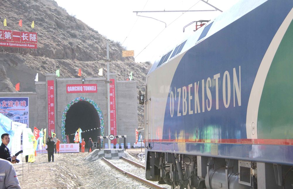2016年2月27日,一列專列停在烏茲別克斯坦安格連至琶布鐵路甘姆奇克隧道進(jìn)口。這一隧道長19.26公里,為中亞第一長隧、烏茲別克斯坦一號(hào)工程,也是“絲綢之路”經(jīng)濟(jì)帶鐵路網(wǎng)中吉烏鐵路的重要一環(huán)。新華社記者沙達(dá)提攝