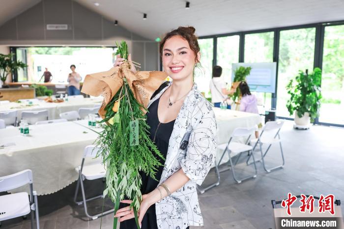 6月10日,漢娜·羅斯展示自己現(xiàn)場(chǎng)制作的菖蒲花束。(主辦方供圖)