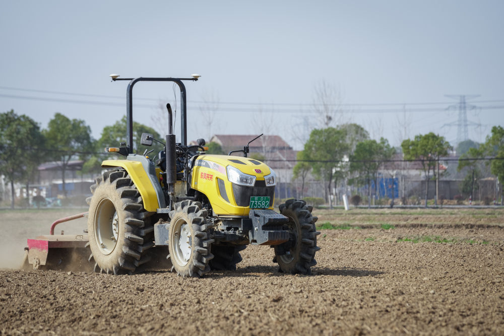 2023年3月15日,在湖北省武漢市黃陂區(qū)胡港灣村,武漢永旺農(nóng)產(chǎn)品專業(yè)合作社的無人駕駛旋耕機(jī)在運作。 新華社記者 伍志尊 攝