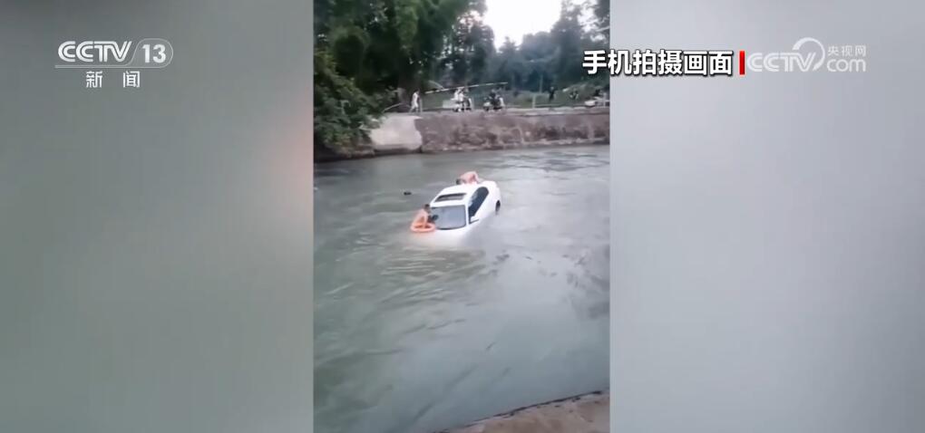近日,在四川成都的一處河道,一輛轎車意外墜入湍急的河水中,車內(nèi)有一名男子。危急時(shí)刻,附近工作人員和群眾合力展開救援。