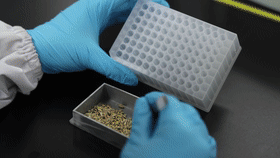 在湖南長沙的岳麓山種業(yè)創(chuàng)新中心,分子育種實驗室研究員李樂正在把脫殼的水稻種子放進樣品盤里,隨后將樣品放置在全自動移液工作站上,進行樣品DNA的提取。該樣品是一份田間試驗的低鎘水稻種子,這是岳麓山種業(yè)創(chuàng)新中心受種業(yè)企業(yè)委托選育的品種。