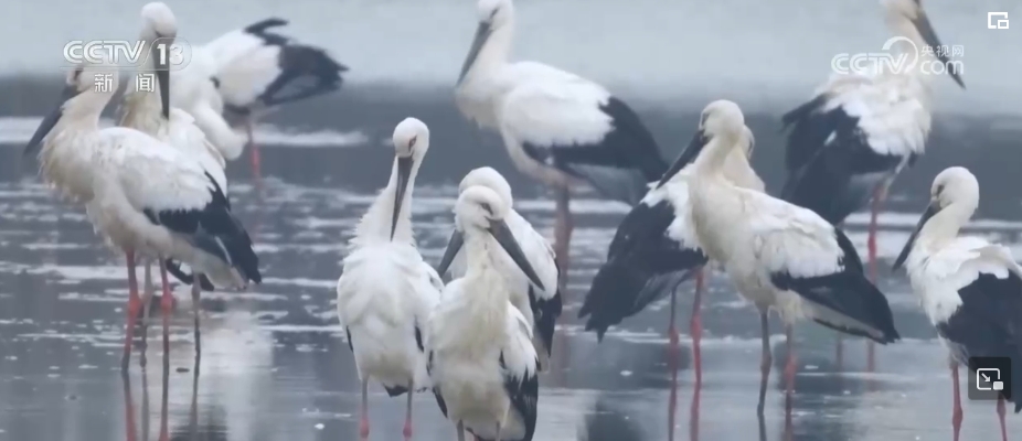 在位于湖南省郴州市的舂陵國(guó)家濕地公園,工作人員近日在開(kāi)展鳥(niǎo)類(lèi)監(jiān)測(cè)時(shí),捕捉到4位特殊的“客人”,它們是被稱(chēng)為“鳥(niǎo)中國(guó)寶”的國(guó)家一級(jí)重點(diǎn)保護(hù)野生動(dòng)物東方白鸛、黑鸛。