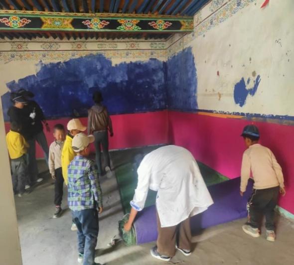 金點子,抓實干。自階段性入戶工作開展以來,駐西嘎村第十三批工作隊認真了解入戶時發(fā)現(xiàn)的村幼兒園改造未能推進的問題,現(xiàn)場走訪村幼兒園,排查村幼兒園用火、用電、用氣、食品衛(wèi)生安全隱患。在交談中,兩位教師談及幼兒園房間老舊、水泥地板凹凸不平,導致幼兒無法午休的問題,工作隊第一時間請示領導,現(xiàn)場勘察房間形狀與大小,駐村隊員自發(fā)購買并鋪就64.2平米防滑草坪地毯,以改善園內(nèi)22名幼兒生活環(huán)境,給孩子們創(chuàng)建了相對舒適、干凈的午休環(huán)境。村幼兒園教師次珍表示:“此次活動極大改善了孩子們的生活條件,感謝人行日喀則市分行駐村工作隊一直以來對村幼兒園工作的關心?!?/p>