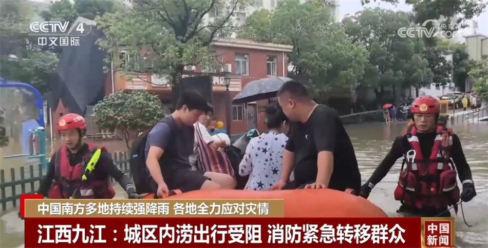 23日,江西九江遭遇強降雨,城區(qū)出現(xiàn)積水內(nèi)澇,部分路段積水深超一米,居民出行受到影響。當?shù)叵谰仍藛T利用橡皮艇幫助群眾轉(zhuǎn)移,同時,消防救援人員使用浮艇泵,連接水帶,開展排水作業(yè)。