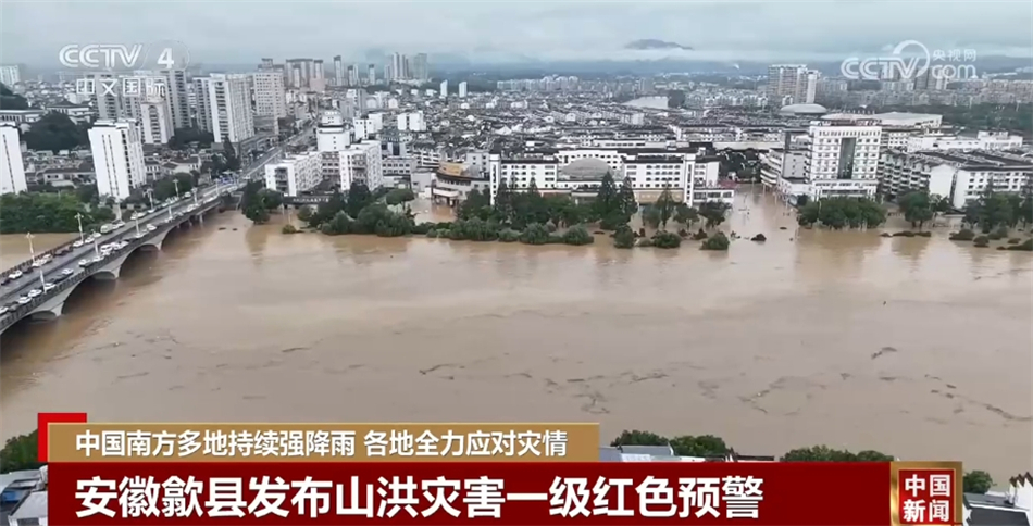 22日到23日,安徽歙縣出現(xiàn)暴雨、大暴雨,強降雨導致縣城部分路段積水嚴重,無法通行。歙縣防汛抗旱指揮部啟動山洪災害一級紅色預警,并通過應急廣播、微信公眾號等方式通知群眾,進行滾動預報預警,開展人員轉(zhuǎn)移工作,截至23日5時30分,當?shù)毓厕D(zhuǎn)移群眾3502戶7934人。