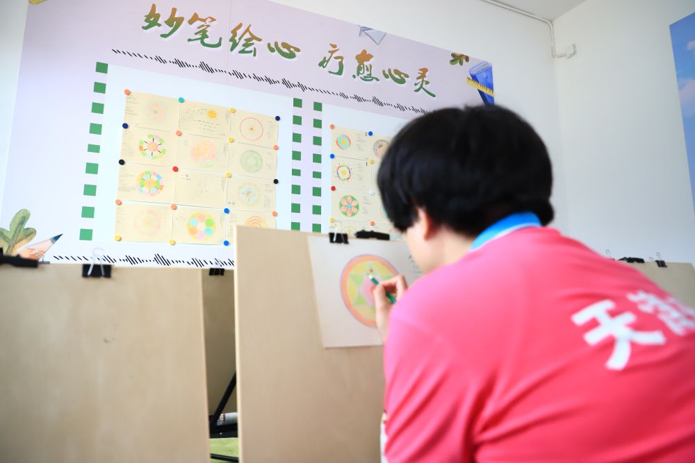 小雪在天津市青泊洼強制隔離戒毒所心理矯治中心繪畫治療室進行繪畫治療。新華社發(fā)