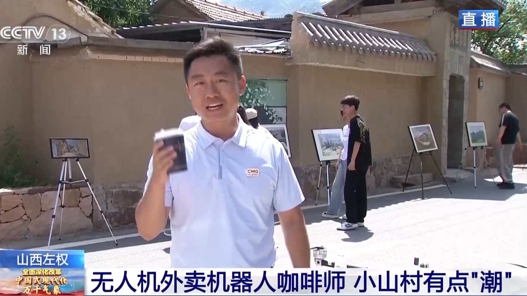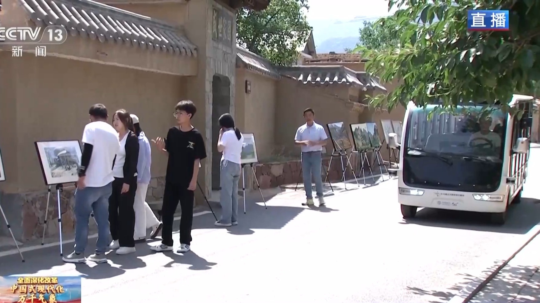 總臺(tái)記者 胡曉冬:走在村里,第一感受就是這個(gè)村子已經(jīng)闖進(jìn)藝術(shù)圈了。我相信大家已經(jīng)注意到我身后的畫展,這些畫展時(shí)不時(shí)會(huì)出現(xiàn)在小山村的大街小巷中,讓藝術(shù)氣息充滿各個(gè)角落。