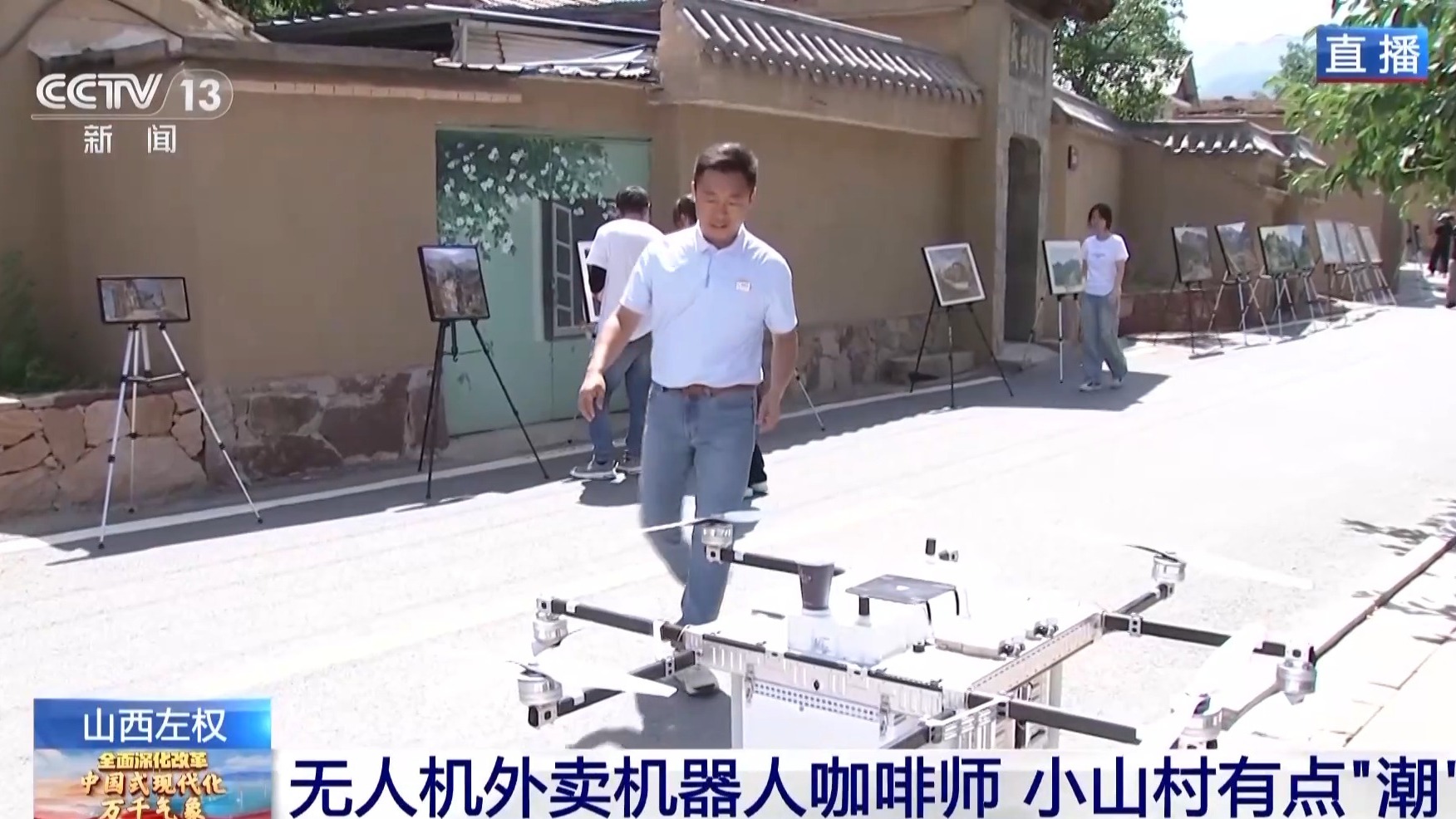 隨著前來(lái)寫生的人越來(lái)越多,澤城村的“賣點(diǎn)”逐漸多了起來(lái)。小小的一杯咖啡在城市里不足為奇,但是在這里我要通過(guò)這杯咖啡介紹兩個(gè)特點(diǎn)。第一點(diǎn),這杯咖啡不是我從店里自取,也不是外賣小哥送過(guò)來(lái)的,而是在直播前我通過(guò)由村民操控的這架無(wú)人機(jī)收取的,這個(gè)無(wú)人機(jī)可攜帶10公斤貨物送達(dá)10公里外的顧客手中。但是無(wú)人機(jī)外賣只是它其中一項(xiàng)業(yè)務(wù),如果村里急需醫(yī)療物資或者在災(zāi)害環(huán)境中運(yùn)送緊急物資,它都是一把好手。