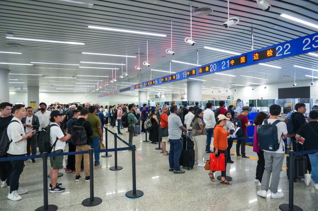 7月4日,白云邊檢站旅客通關現(xiàn)場。(白云邊檢站供圖)