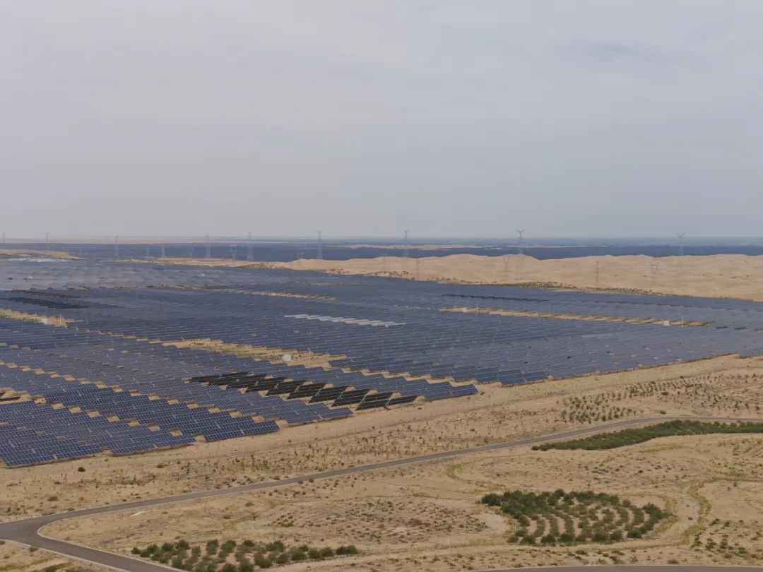 從高空俯瞰,位于鄂爾多斯的達拉特光伏發(fā)電應用領跑基地,像一片深藍色的海面,覆蓋于庫布其沙漠上。每年,這個項目可以發(fā)“綠電”20億度,節(jié)約標煤68萬噸,減排二氧化碳約165萬噸。