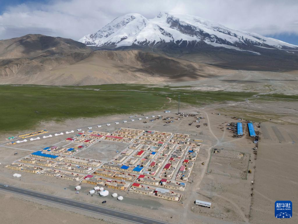 塔西巴伊家住新疆慕士塔格峰腳下的阿克陶縣布倫口鄉(xiāng)蘇巴什村三小隊(duì)(7月2日攝,無(wú)人機(jī)照片)。新華社記者 胡虎虎 攝