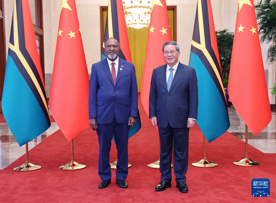 國(guó)務(wù)院總理李強(qiáng)12日上午在北京人民大會(huì)堂同來華進(jìn)行正式訪問的瓦努阿圖總理薩爾維舉行會(huì)談。