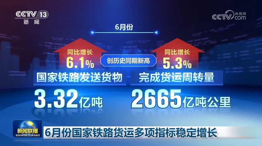 記者今天(7月14日)從國(guó)鐵集團(tuán)獲悉,6月份,國(guó)家鐵路貨物發(fā)送量、貨運(yùn)周轉(zhuǎn)量等多項(xiàng)指標(biāo)創(chuàng)出歷史同期新高。