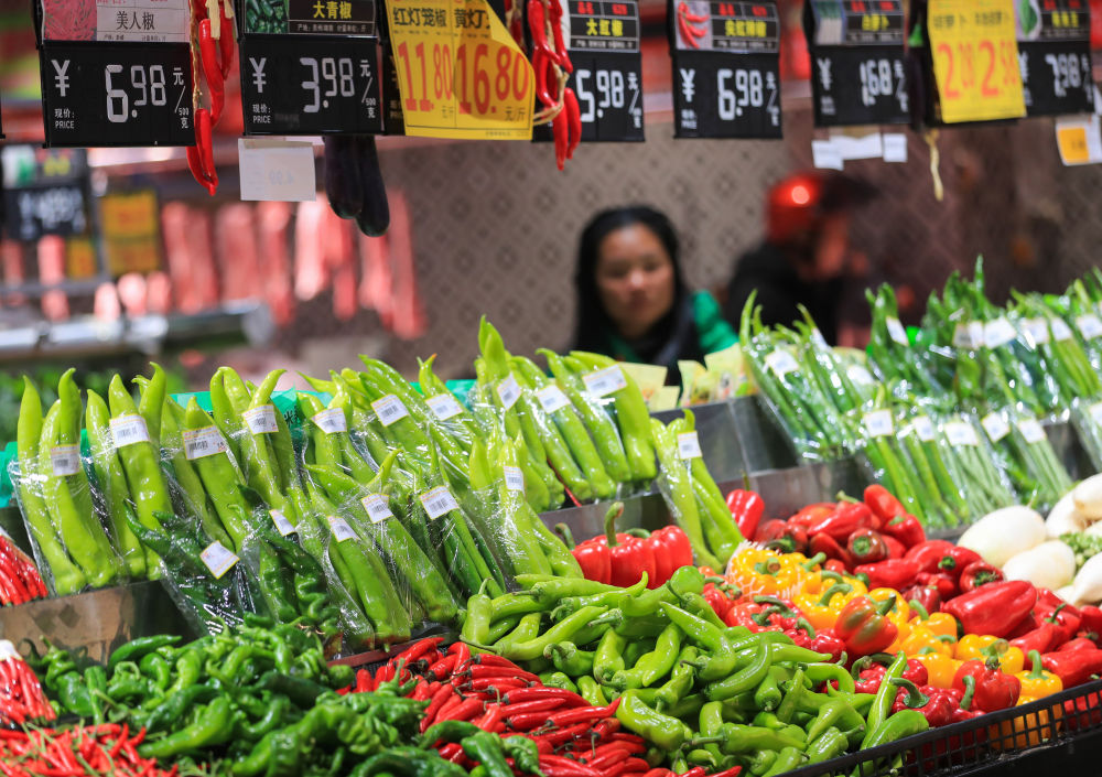 3月9日,消費者在貴州省從江縣一家超市選購蔬菜。新華社發(fā)(羅京來攝)