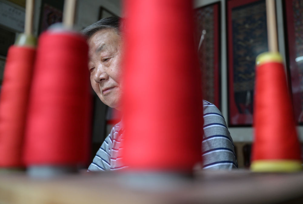 7月3日,唐洪祥檢查織錦博物館里收藏的清代木織機(jī)狀況。