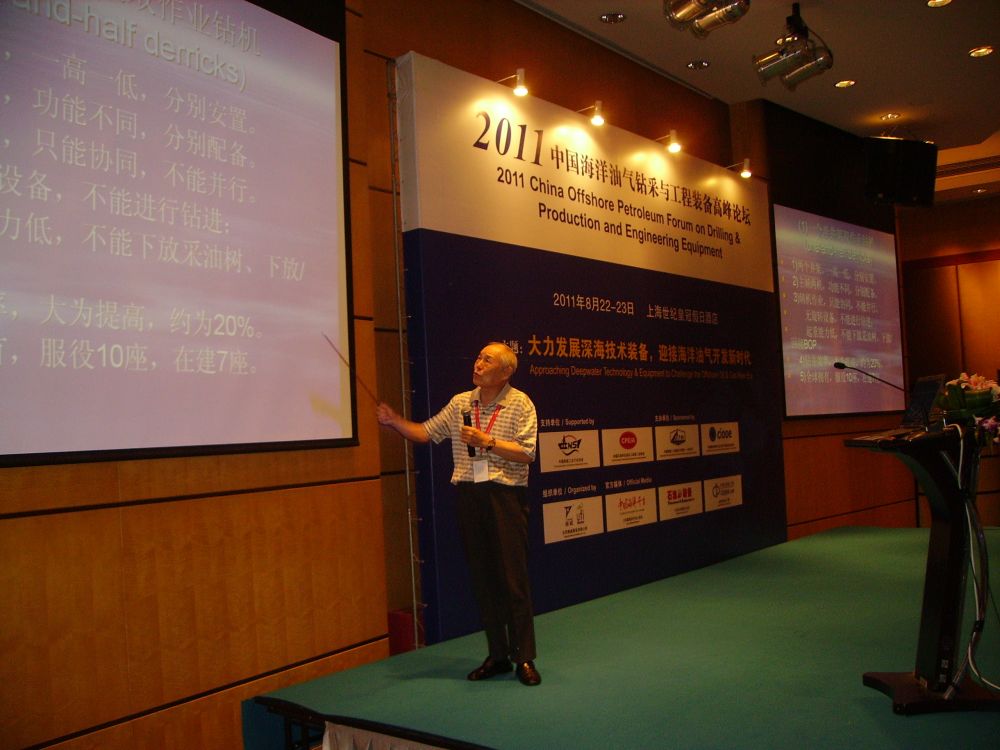 2011年,方華燦在上海參加中國海洋油氣鉆采與工程裝備高峰論壇時作學(xué)術(shù)報告。新華社發(fā)
