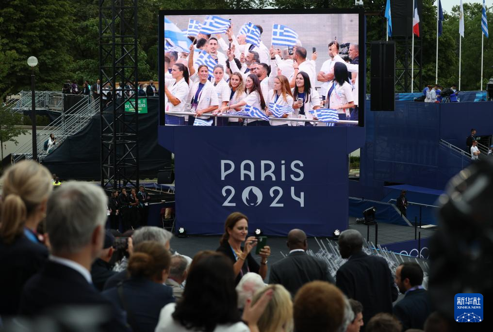 7月26日,希臘體育代表團在開幕式上。新華社記者 陳斌 攝
