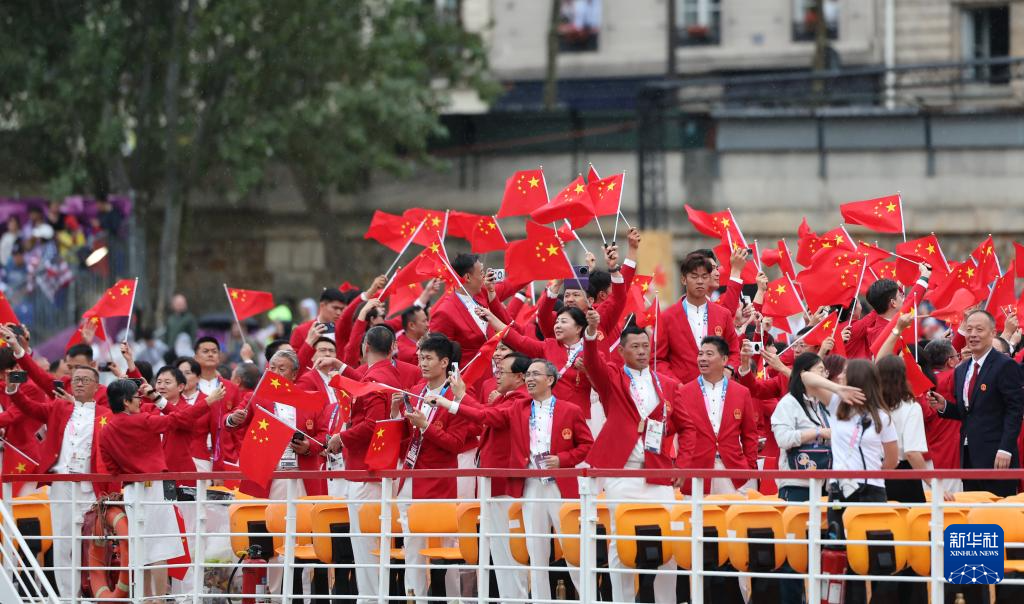 7月26日,中國體育代表團在開幕式上。新華社記者 萬象 攝