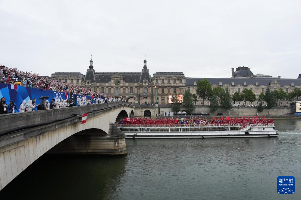 7月26日,各代表團成員在開幕式上抵達耶拿橋。新華社發(fā)(POOL照片/盧多維克·馬林)
