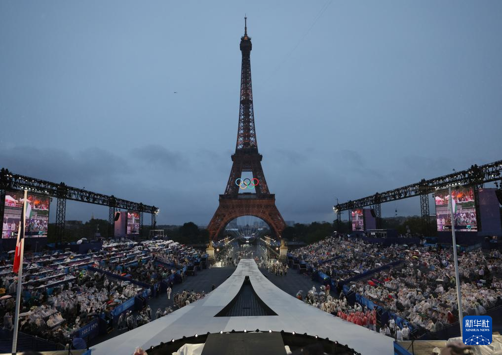 這是7月26日在特羅卡德羅廣場拍攝的開幕式現(xiàn)場。新華社發(fā)(POOL照片/帕斯卡爾·勒·塞格雷坦)