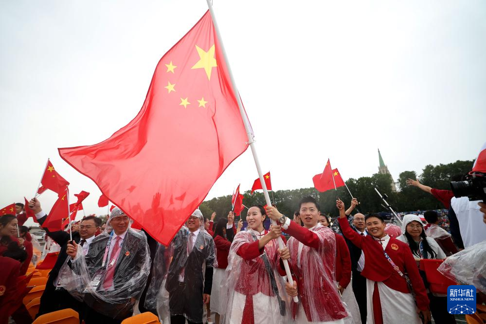 7月26日,中國體育代表團在開幕式上。新華社記者 郭昱 攝