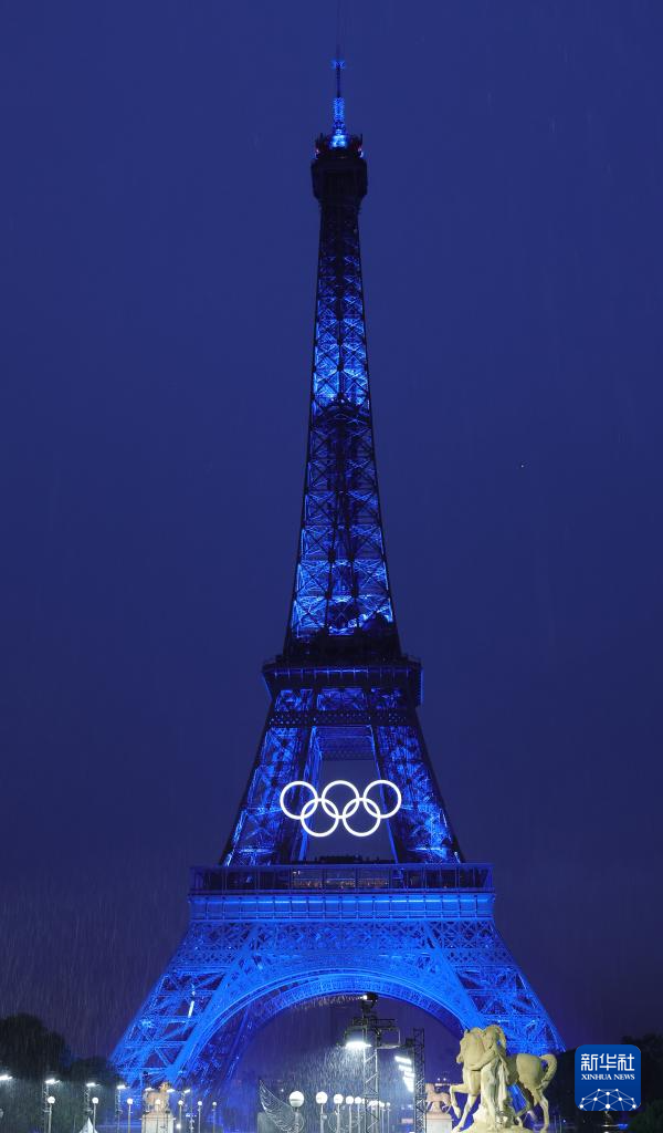 開幕式上拍攝的埃菲爾鐵塔(7月26日攝)。新華社記者 許暢 攝
