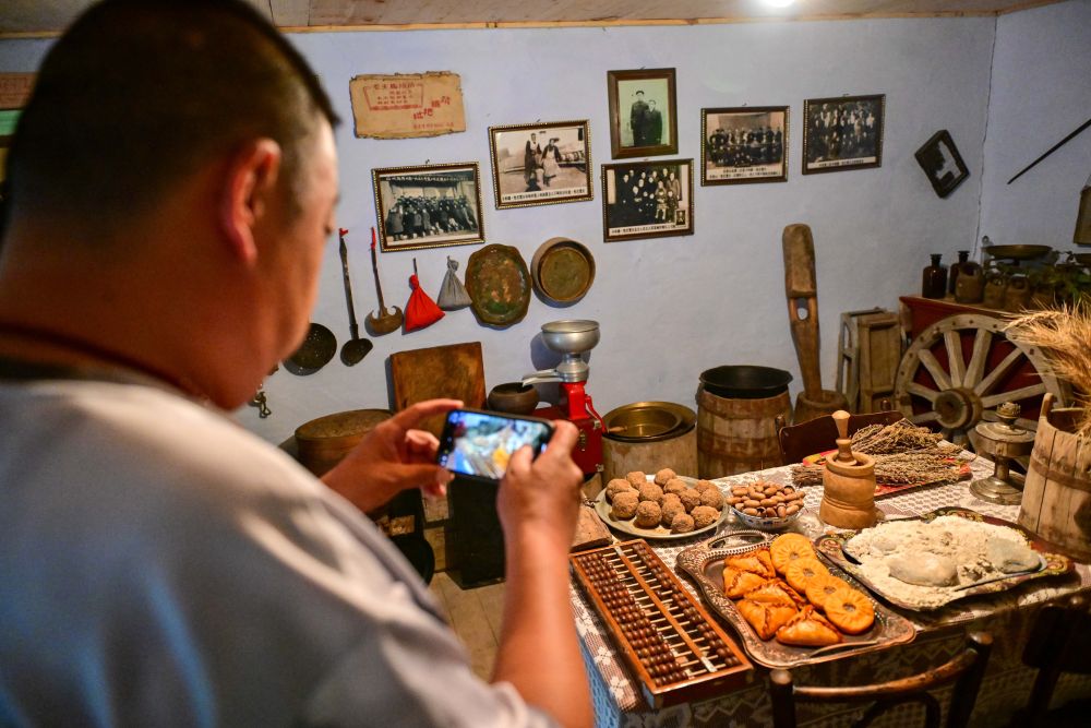 游客在新疆塔城市首家民俗文化家庭博物館參觀(7月24日攝)。