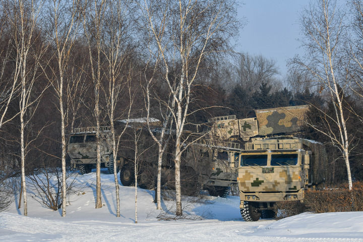 聯(lián)勤保障部隊(duì)某汽車(chē)運(yùn)輸旅運(yùn)輸分隊(duì)開(kāi)展戰(zhàn)地駕駛課目訓(xùn)練(2024年1月2日攝)。新華社發(fā)(趙佳慶 攝)