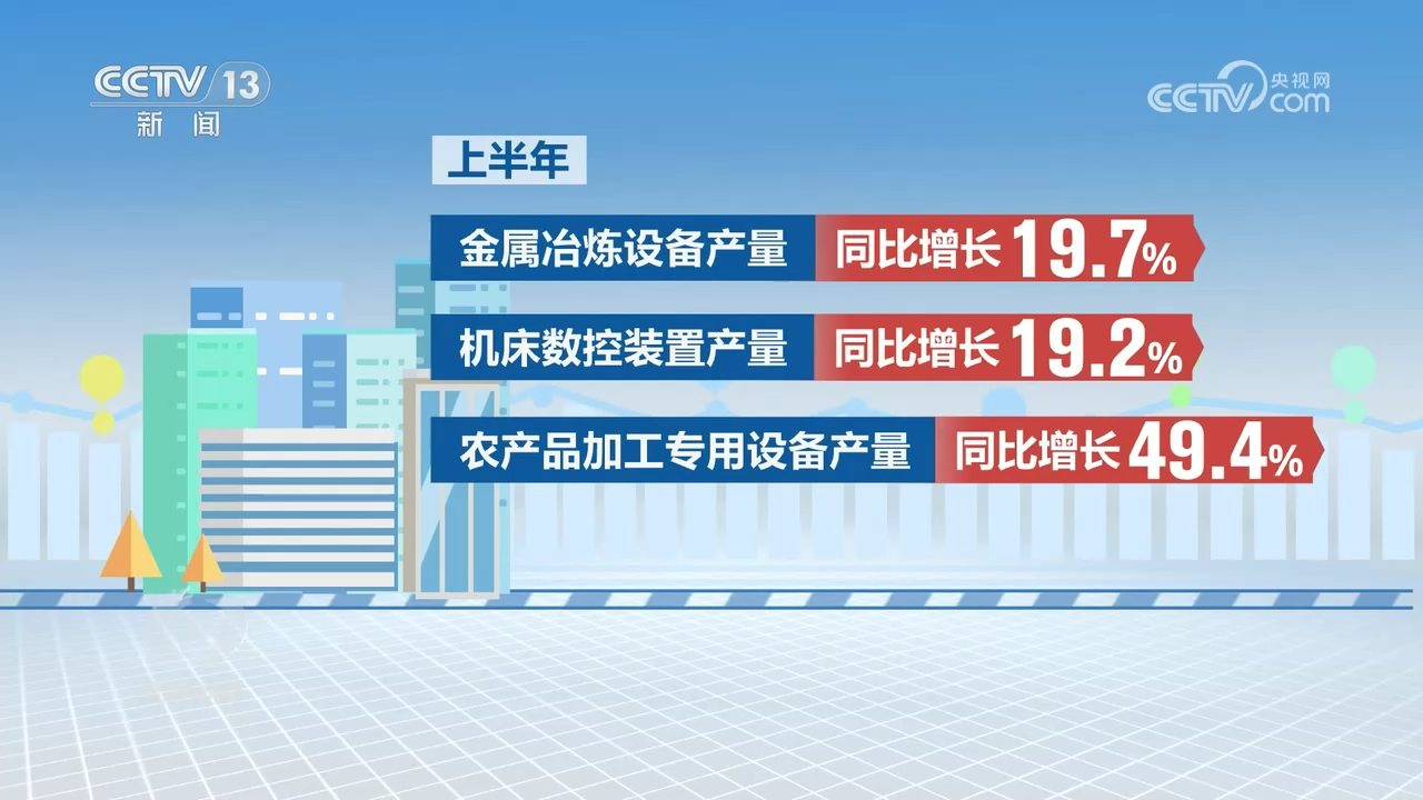 今年以來,在各方共同努力下,推動大規(guī)模設備更新和消費品以舊換新工作取得良好開局。一方面,大規(guī)模設備更新帶動了相關設備生產(chǎn)較快增長,惠及多個重點行業(yè)。上半年,規(guī)模以上金屬冶煉設備、機床數(shù)控裝置、農(nóng)產(chǎn)品加工專用設備產(chǎn)量同比分別增長19.7%、19.2%、49.4%。另一方面,消費品以舊換新政策引導居民消費潛力有序釋放,對拉動汽車、家電等耐用消費品銷量增長起到了一定的“催化”作用。上半年,限額以上單位,也就是年主營業(yè)務收入達到500萬元及以上的零售企業(yè),家用電器和音像器材類商品零售額同比增長3.1%,比上年同期加快2.1個百分點。