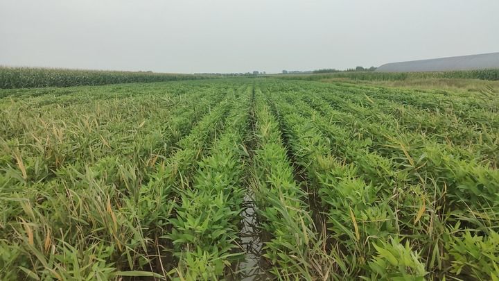 這是吉林省農(nóng)安縣小城子鄉(xiāng)光明村種植的耐鹽堿大豆(2024年8月4日攝)。