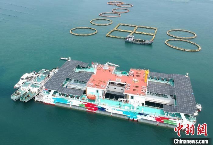 圖為航拍“閩投1號”深海智慧漁旅平臺。(無人機照片)中新社記者 呂明 攝