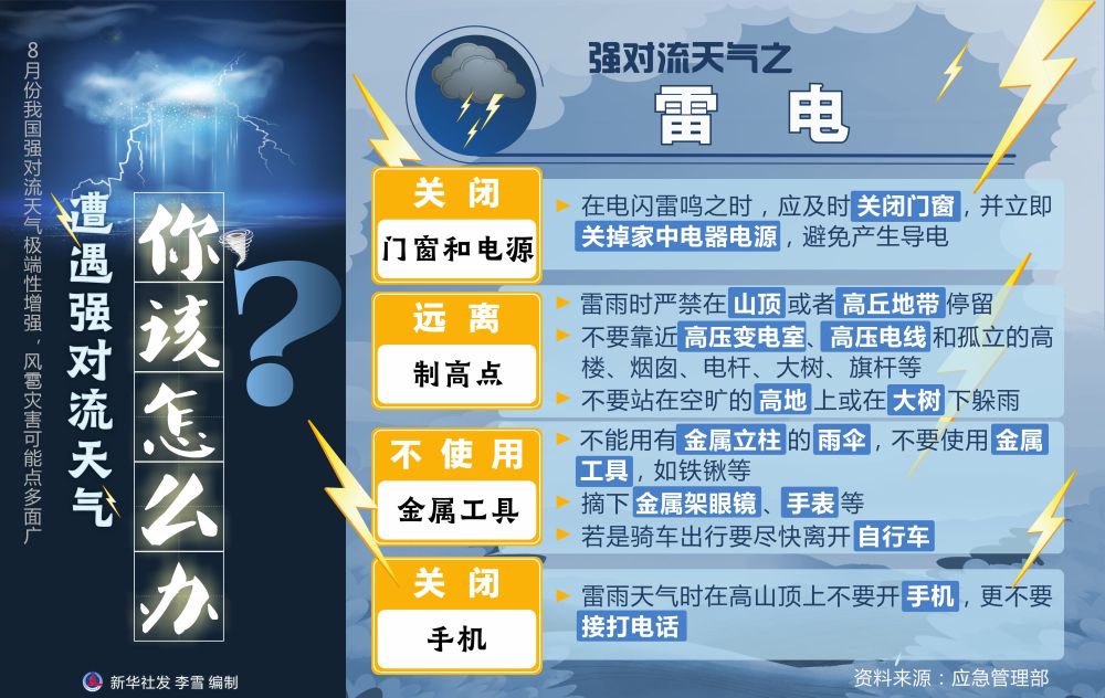 從應(yīng)急管理部獲悉,多方會(huì)商研判認(rèn)為,8月份中國(guó)強(qiáng)對(duì)流天氣極端性增強(qiáng),風(fēng)雹災(zāi)害可能點(diǎn)多面廣。遭遇強(qiáng)對(duì)流天氣,你該怎么辦?