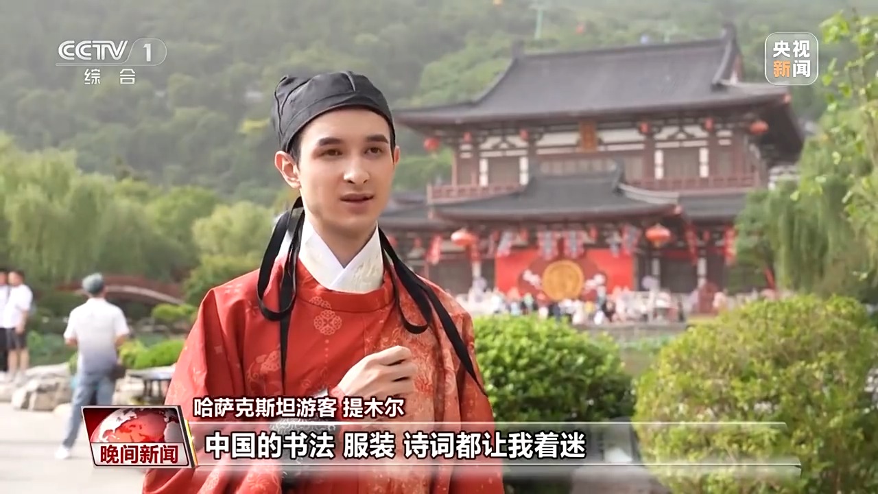 哈薩克斯坦游客提木爾:中國的書法、服裝、詩詞都讓我著迷,今天穿著這身中國的傳統(tǒng)服飾,體驗(yàn)中國唐代的宮廷婚禮,這個經(jīng)歷真的太獨(dú)特,太珍貴了。