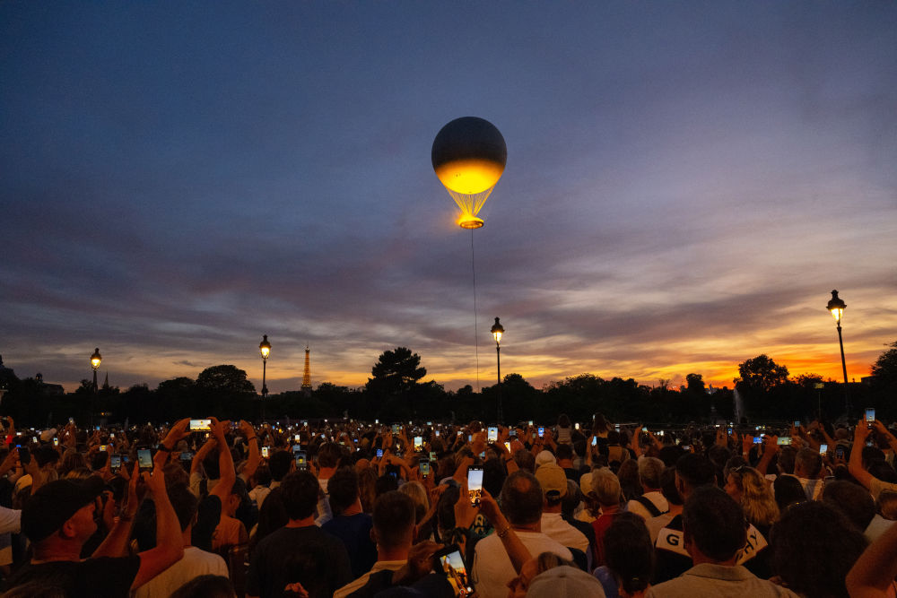 歷史建筑與現(xiàn)代藝術(shù)的融合彰顯法式浪漫。埃菲爾鐵塔上的燈光秀劃破夜空。特羅卡德羅廣場上,神秘人將火炬交給法國傳奇球星齊達(dá)內(nèi),不久后,杜樂麗花園內(nèi)的主火炬——一個(gè)直徑7米的火焰環(huán),頂部是一個(gè)高30米、直徑22米的系留氣球,被“點(diǎn)燃”。