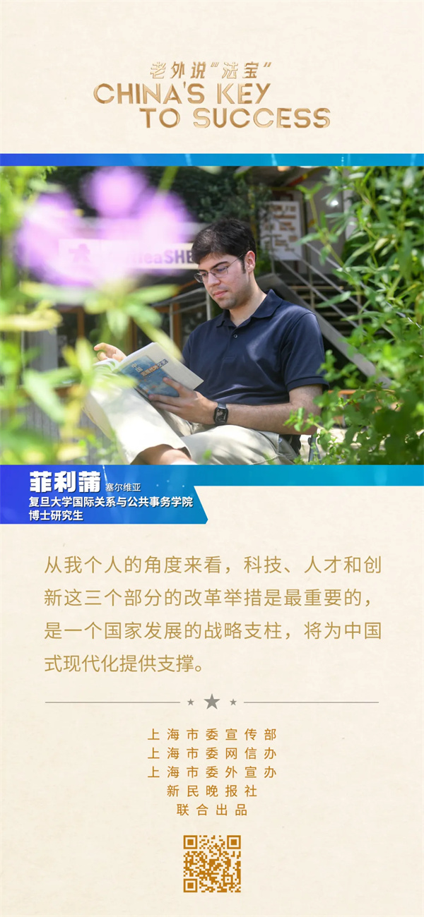 菲利蒲特別關(guān)注三中全會(huì)公報(bào)中關(guān)于科技、人才和創(chuàng)新的改革舉措。“從我個(gè)人的角度來看,這三個(gè)部分是最重要的,是一個(gè)國家發(fā)展的戰(zhàn)略支柱,將為中國式現(xiàn)代化提供支撐。”菲利蒲認(rèn)為,無論是發(fā)達(dá)國家還是發(fā)展中國家,科技、人才和創(chuàng)新這三個(gè)因素都是關(guān)鍵,此次三中全會(huì)的改革舉措,已經(jīng)為三者進(jìn)行了最好的布局。