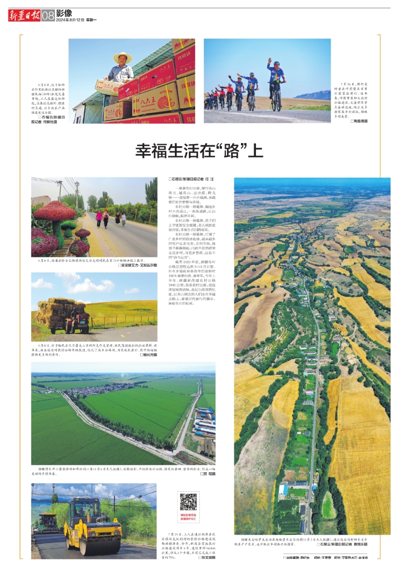 截至2023年底,新疆農(nóng)村公路總里程達(dá)到15.58萬(wàn)公里,所有鄉(xiāng)鎮(zhèn)和具備條件的建制村100%通硬化路、通客車。今年上半年,新疆新改建農(nóng)村公路1940公里。條條農(nóng)村公路,是經(jīng)濟(jì)發(fā)展的動(dòng)脈,是民生改善的見(jiàn)證,讓天山南北的人們走在幸福之路上,感受時(shí)代前行的腳步,體驗(yàn)生活的和美。