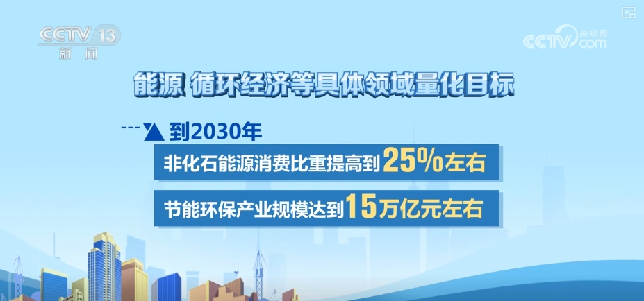 《意見(jiàn)》還針對(duì)能源、循環(huán)經(jīng)濟(jì)等具體領(lǐng)域提出一些量化目標(biāo)。比如,到2030年,非化石能源消費(fèi)比重提高到25%左右;節(jié)能環(huán)保產(chǎn)業(yè)規(guī)模達(dá)到15萬(wàn)億元左右。