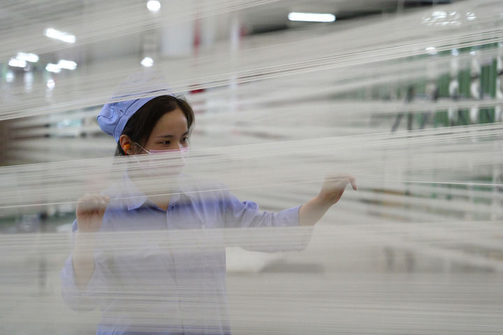 工作人員在位于河南省平頂山市的中國(guó)平煤神馬集團(tuán)簾子布發(fā)展公司布機(jī)車間檢查絲線情況(2024年3月28日攝)。中國(guó)平煤神馬集團(tuán)積極延伸煤炭產(chǎn)業(yè)鏈,普通的煤炭被加工成眾多高附加值衍生產(chǎn)品。
