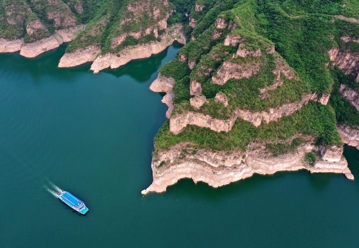 在河南省濟(jì)源市拍攝的黃河三峽景色(2024年5月28日攝,無人機(jī)照片)。