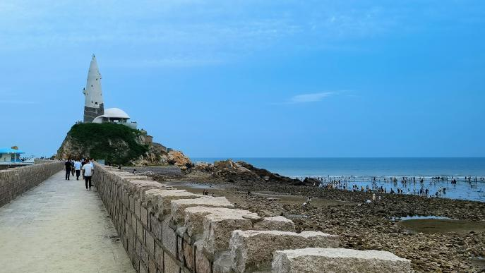 孫雪:這里的空氣比較清新,海的環(huán)境也不錯,很寬闊很藍(lán),我們大人喜歡拍照,小孩子就在這里趕海。