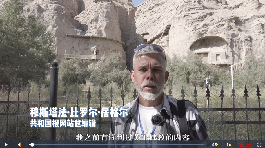 共和國(guó)報(bào)網(wǎng)站總編輯穆斯塔法·比羅爾·居格爾說(shuō),這是他第一次參觀佛教相關(guān)場(chǎng)所,中國(guó)政府對(duì)石窟的保護(hù)使人們得以見(jiàn)證千年前的歷史,并了解那時(shí)的人們的宗教信仰與處事哲學(xué)。他指出:“這是一種文化傳承。我們應(yīng)當(dāng)延續(xù)和保護(hù)這些文化,并向后代講述那段故事?!?strong>(光明網(wǎng)記者 張安迪)