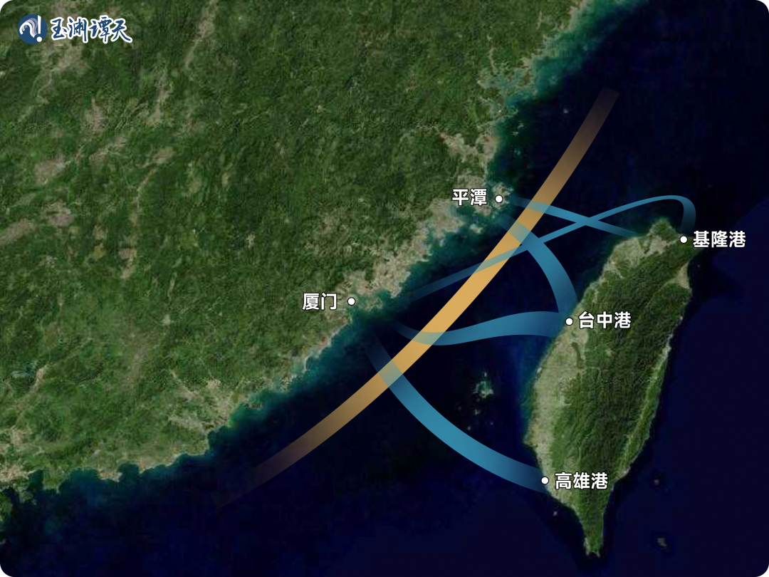 從圖上可以看到,要到達臺灣島西岸,大多數(shù)船只都需要穿過臺灣海峽中部海域。