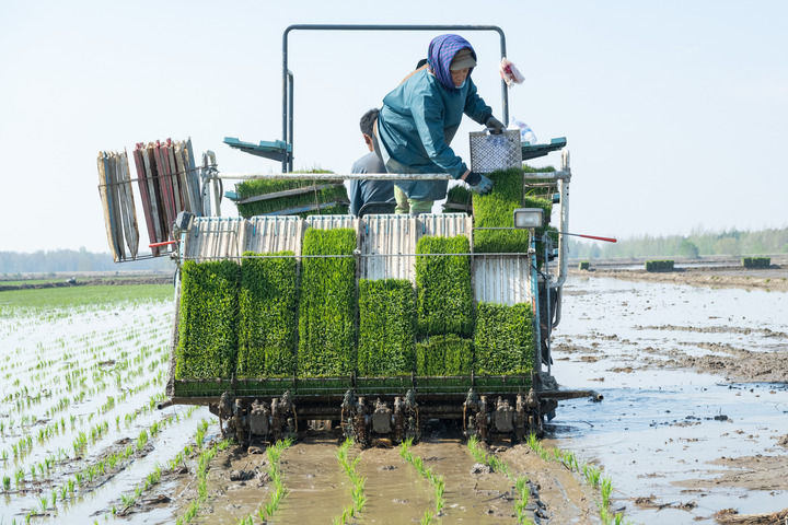 在黑龍江北大荒集團(tuán)前哨農(nóng)場(chǎng)有限公司,農(nóng)民駕駛插秧機(jī)進(jìn)行水稻插秧作業(yè)(2024年5月8日攝)。新華社記者 謝劍飛 攝