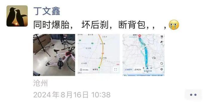 與此同時(shí),丁文鑫也經(jīng)歷了中暑、遇到了暴雨,居無定所、食無常地、晝夜顛倒、爆胎、壞剎車更是常事……