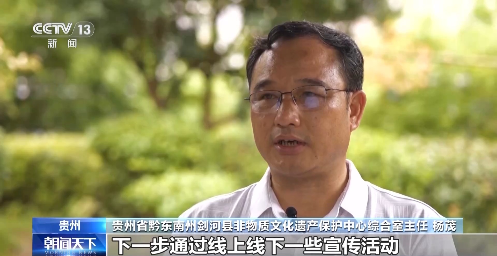 貴州省黔東南州劍河縣非物質(zhì)文化遺產(chǎn)保護中心綜合室主任 楊茂:下一步,通過線上線下一些宣傳活動,吸引更多的游客和設計師到劍河調(diào)研,把劍河的錫繡推廣出去,獲得更大的市場和發(fā)展空間。