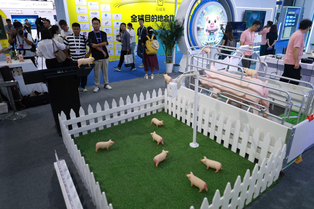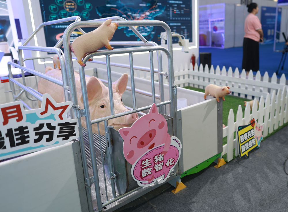 8月28日,觀展者在2024中國國際大數據產業(yè)博覽會現(xiàn)場參觀智能生豬全產業(yè)鏈數智化服務總平臺模型。